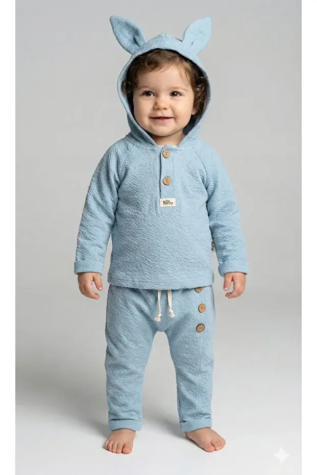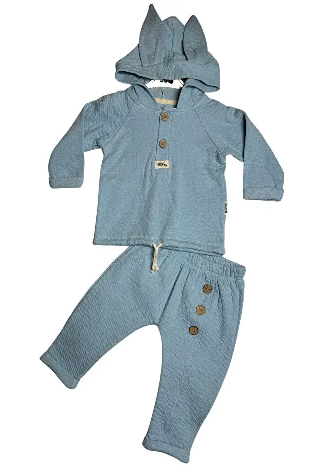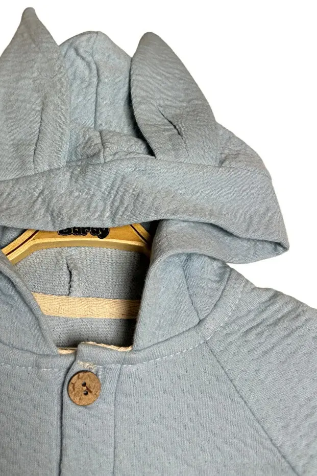 Tavşan kulaklı Örme Müslin İkili Takım 9 -12-18 Ay Seri -915-Mavi