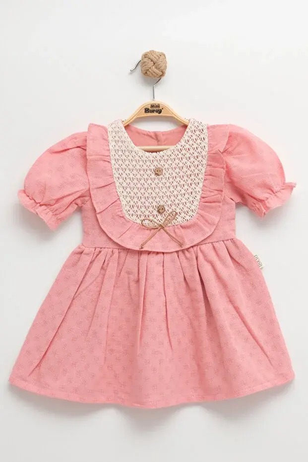 Yazlık Dokuma Kız Elbise - %100 Pamuk 9-12-18-24 Ay Seri -1062-Pembe