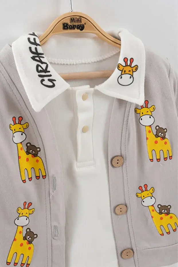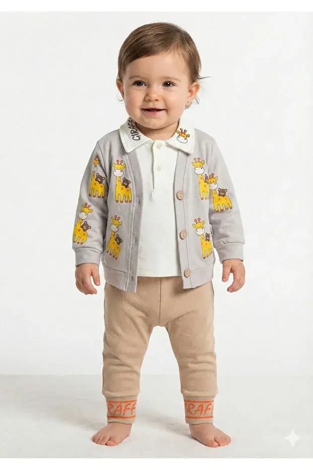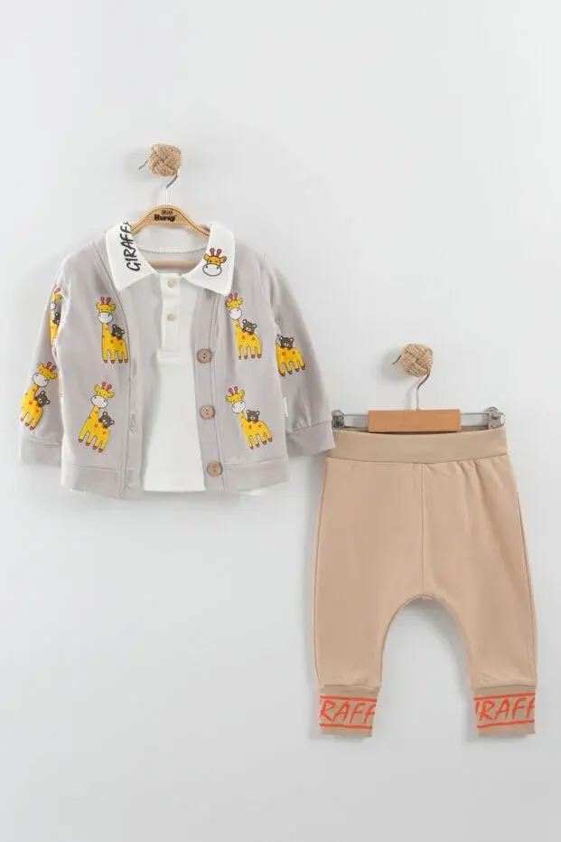 Zürafa baskılı Ceketli Erkek 3 Lü Takım - 9-12-18 Ay Seri -923-Gri